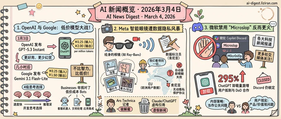 On March 3, OpenAI released GPT-5.3 Instant as ChatGPT's new default model, available to all users immediately. Hours later, Google launched Gemini 3.1 Flash-Lite, its cheapest Gemini 3 model to date. Neither company announced a breakthrough in intelligence. Both announced a breakthrough in cost.